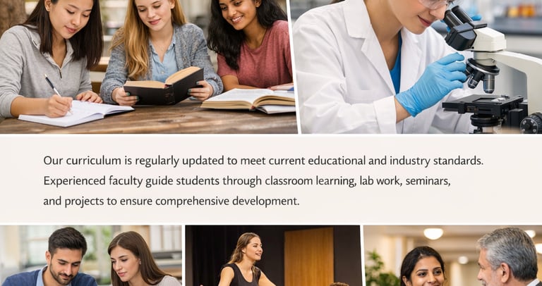 The curriculum follows university and regulatory guidelines and is regularly updated to meet current educational and industry standards. Experienced and dedicated faculty members guide students through classroom instruction, laboratory work, seminars, workshops, and project-based learning to ensure comprehensive academic development.